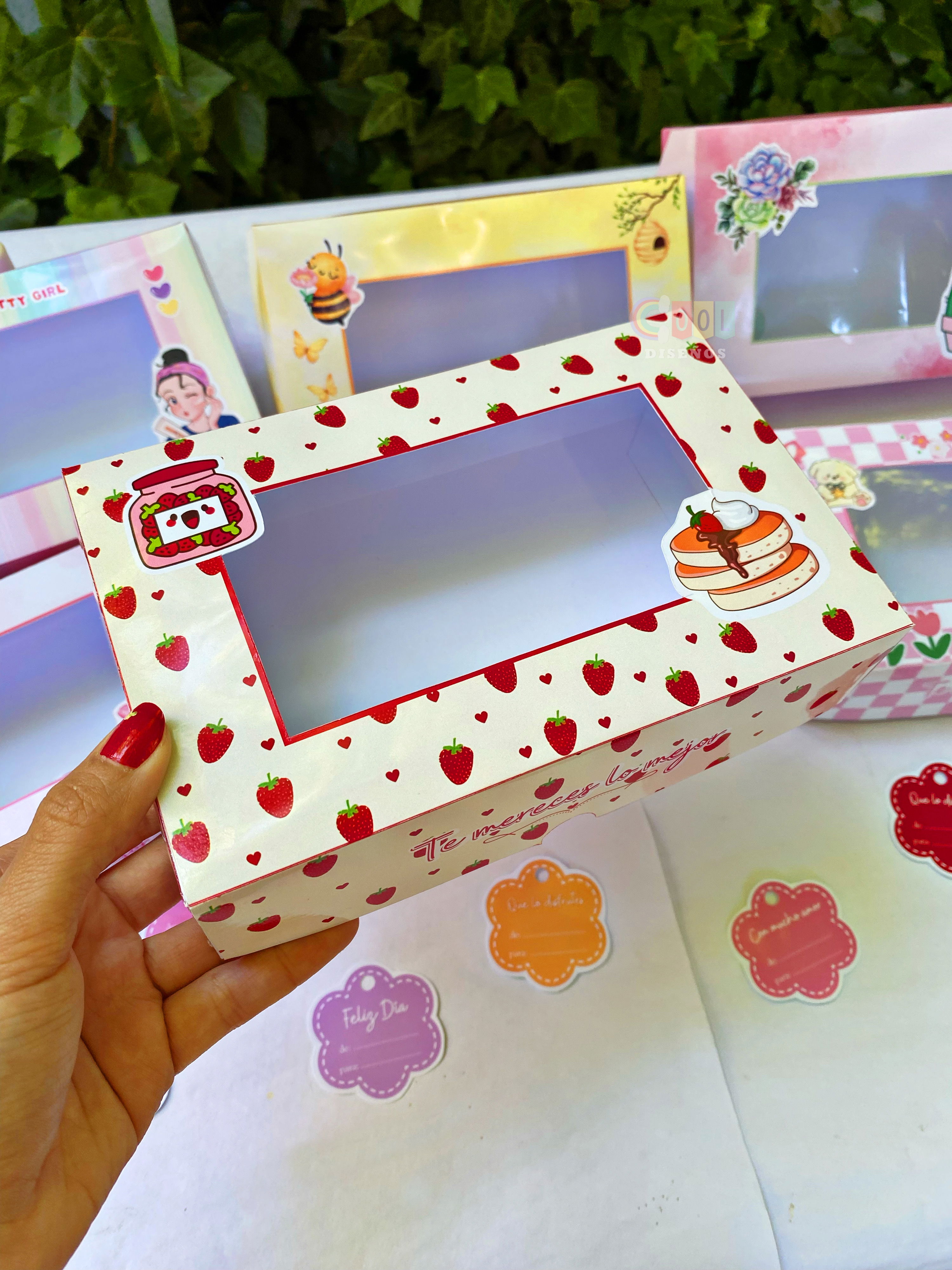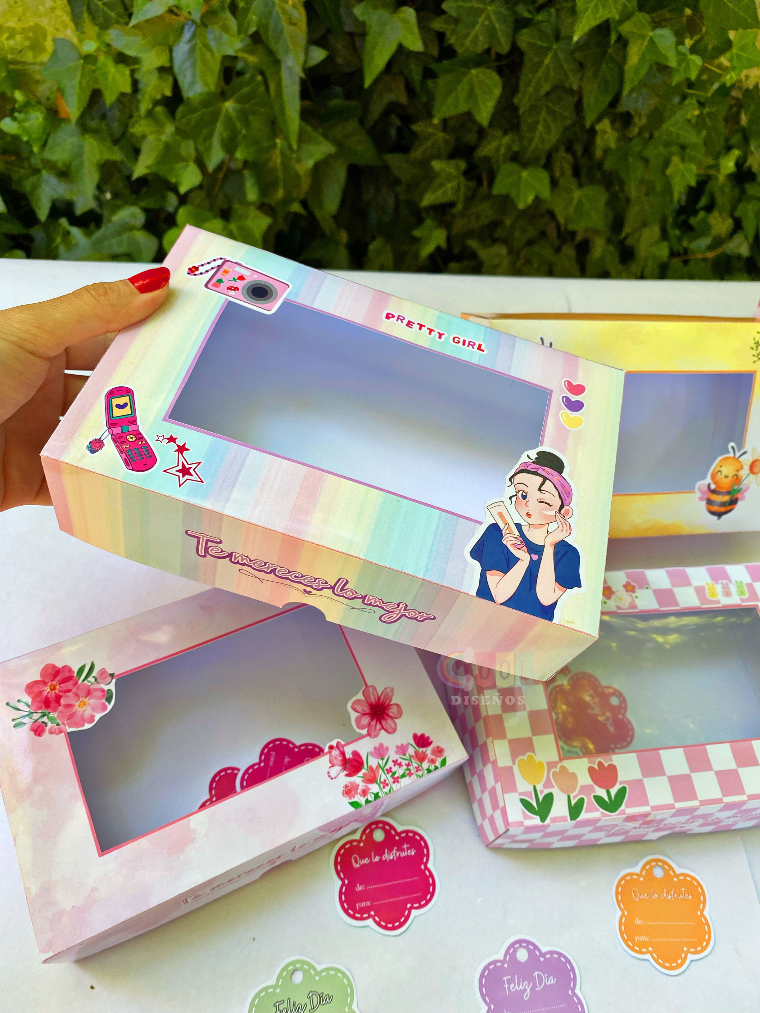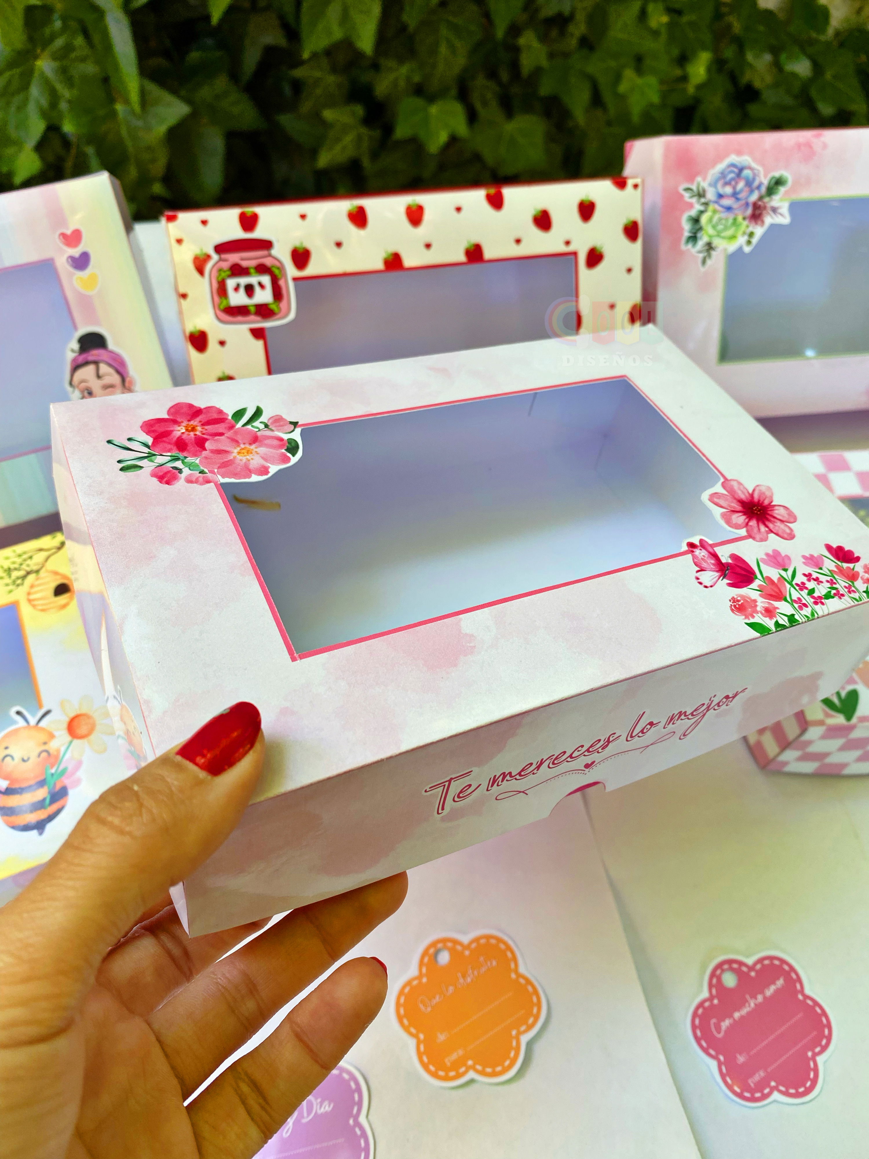• Cada cajita viene con 3 Tags con diferentes frases: "Feliz dia”, "Que lo disfrutes", "Con mucho amor”.