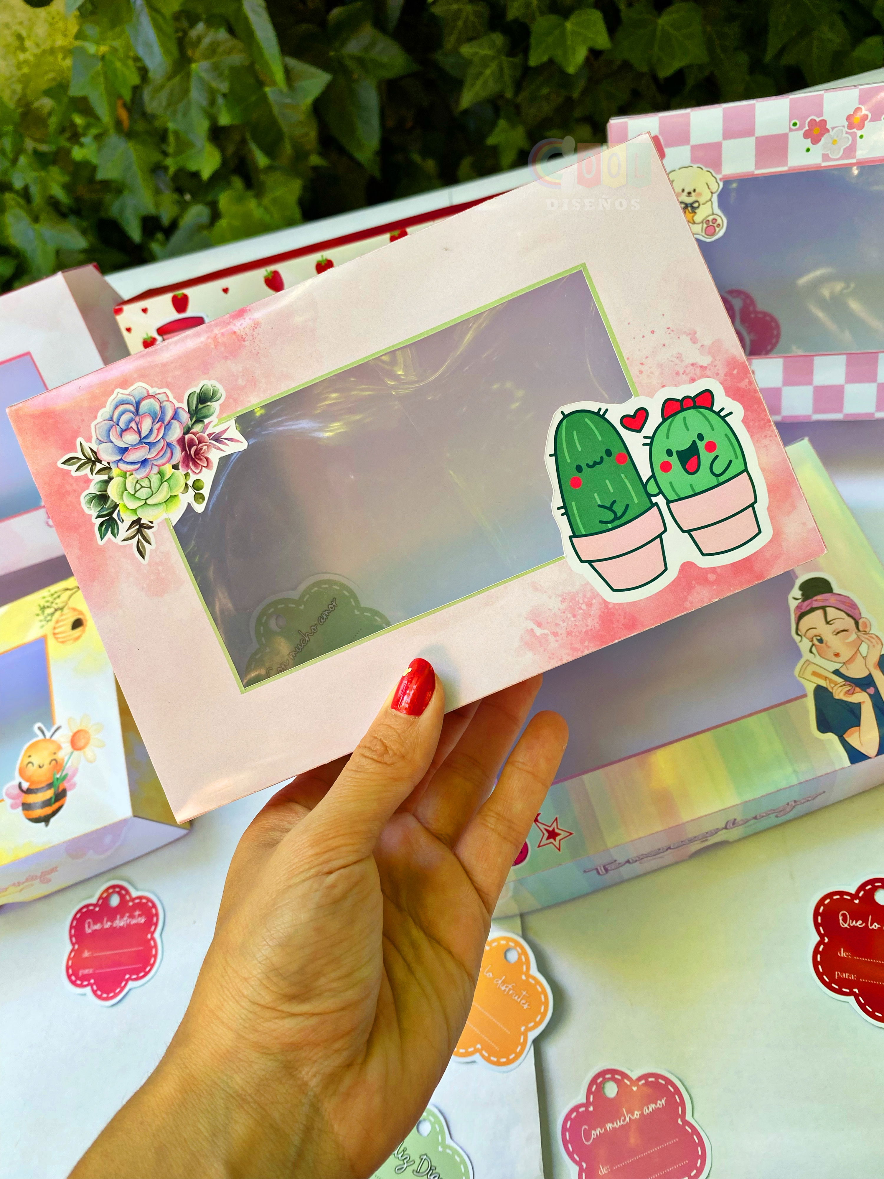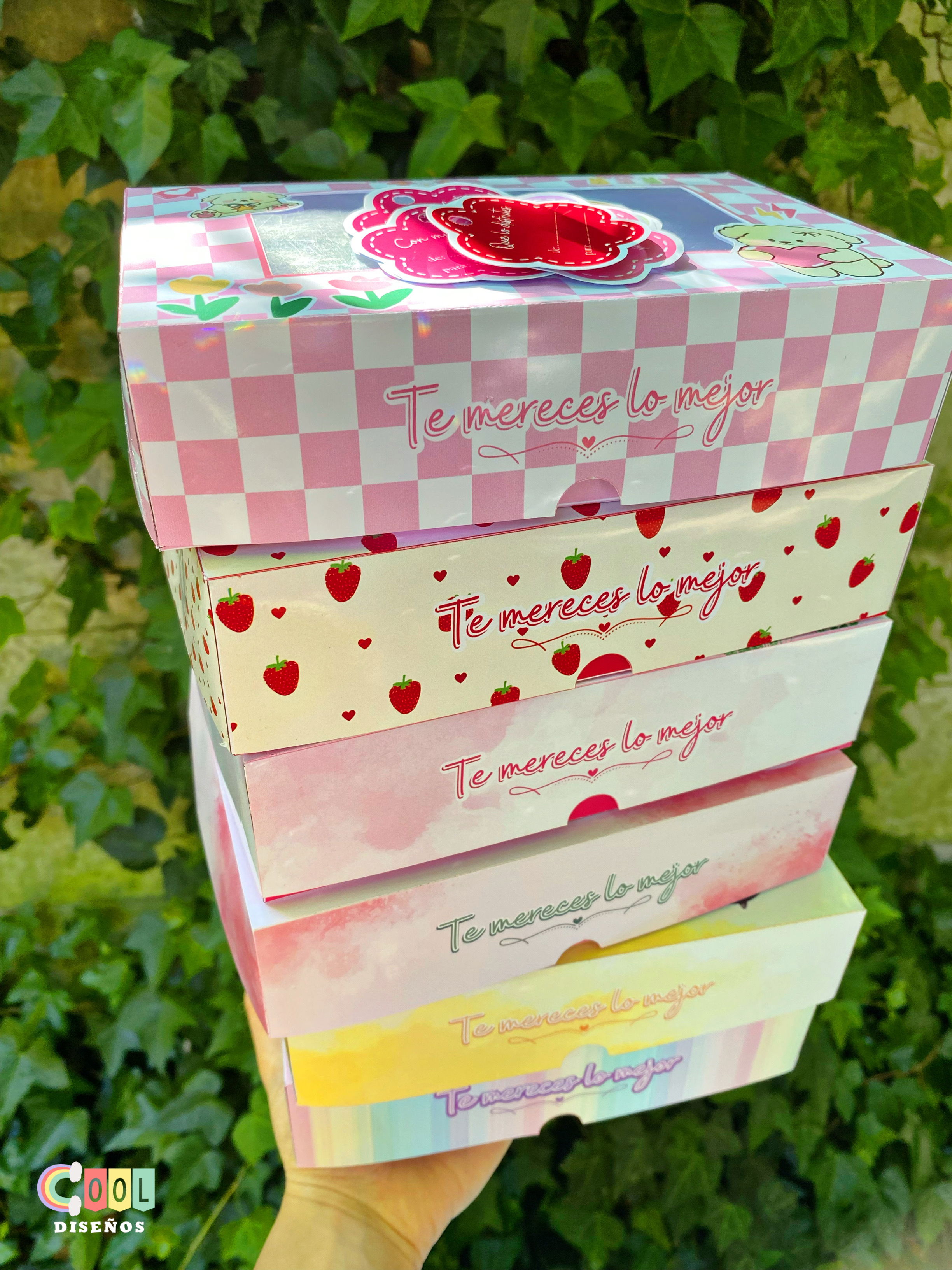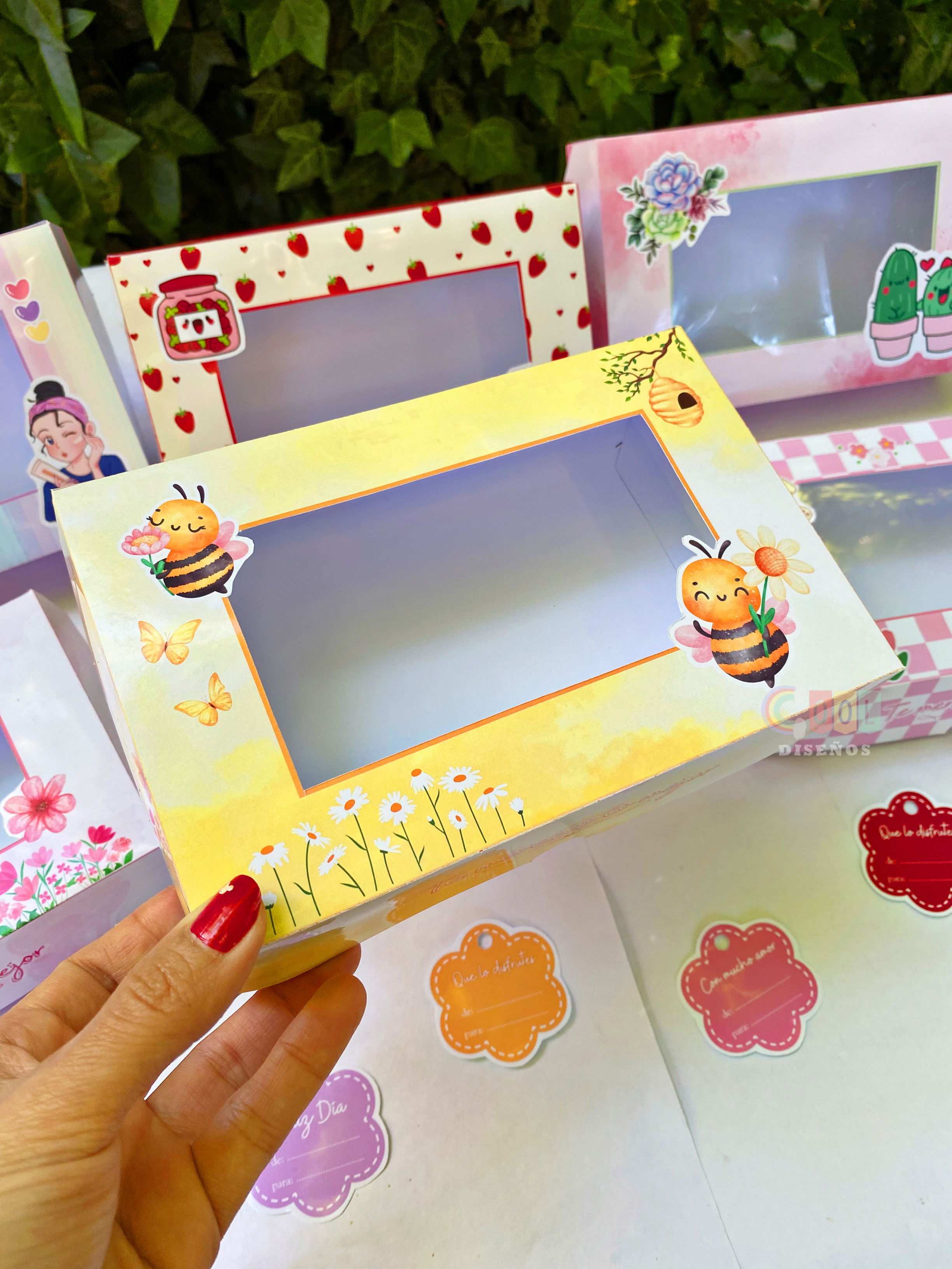 • Cada cajita viene con 3 Tags con diferentes frases: "Feliz dia”, "Que lo disfrutes", "Con mucho amor”.