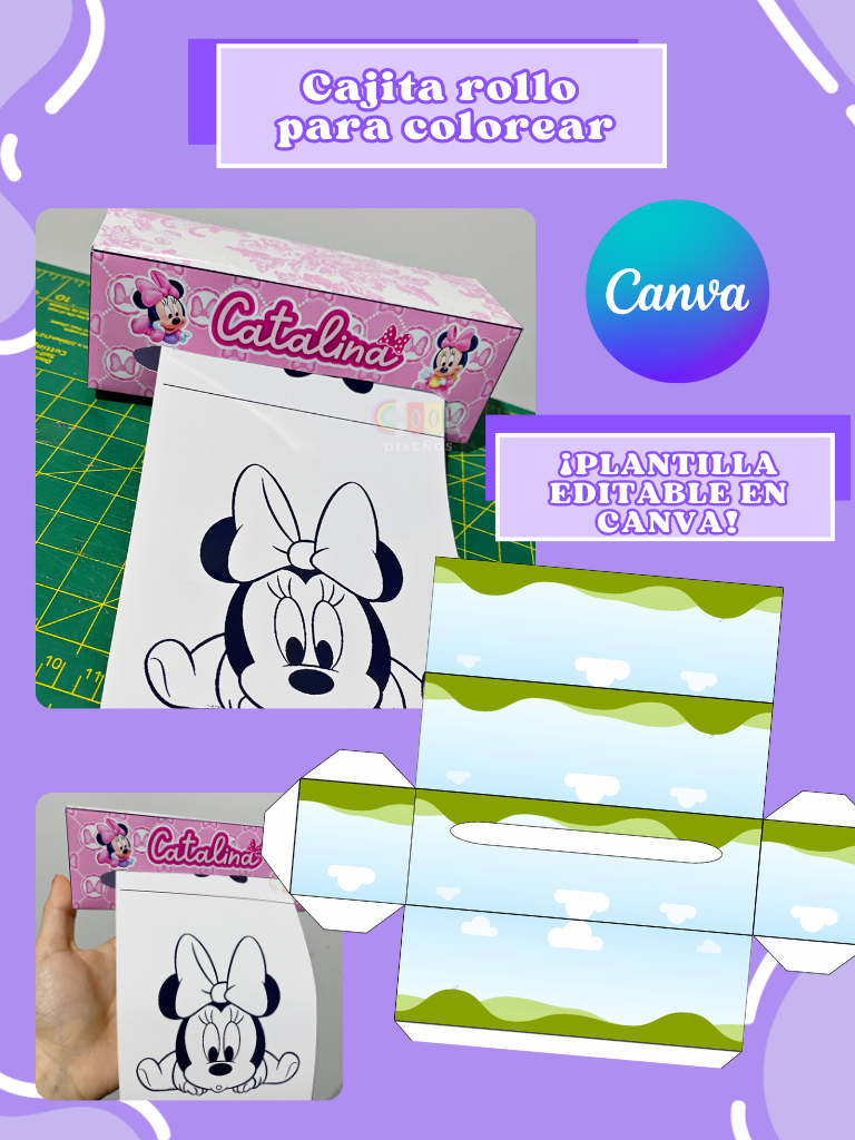 PLANTILLA 100% EDITABLE EN CANVA DE CAJITA CON ROLLO DE DIBUJOS PARA COLOREAR