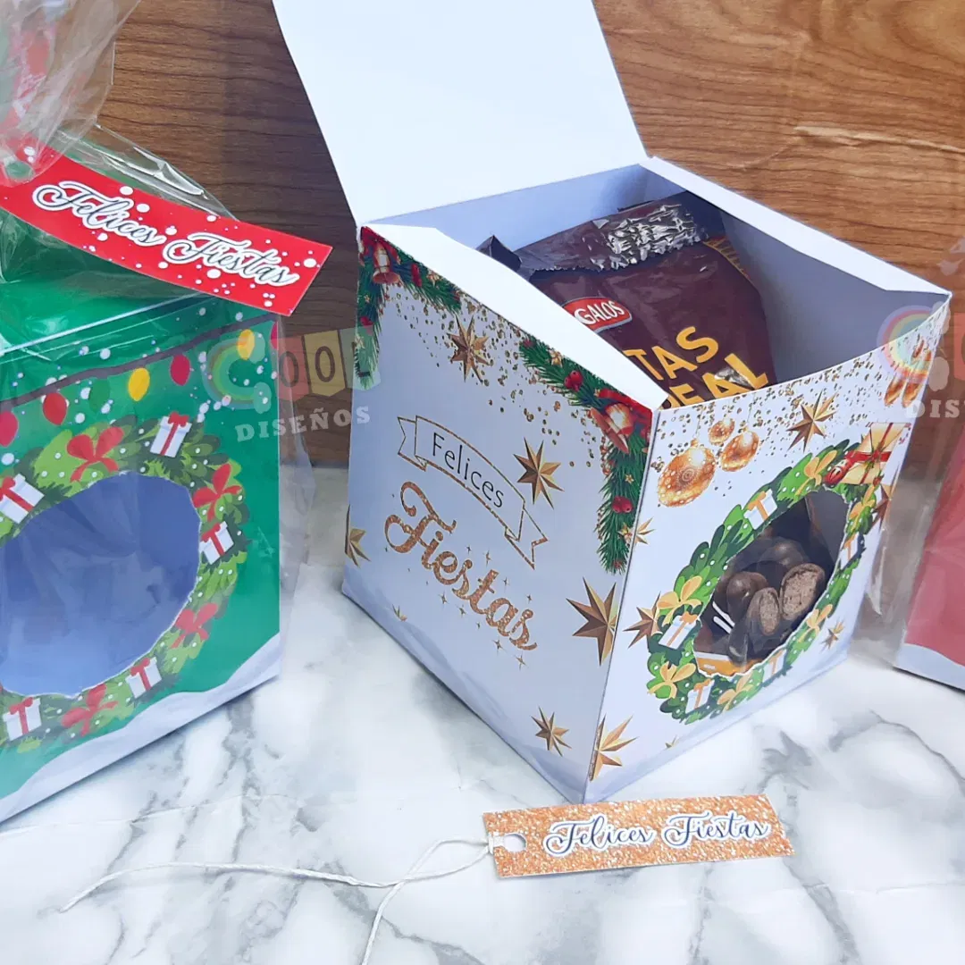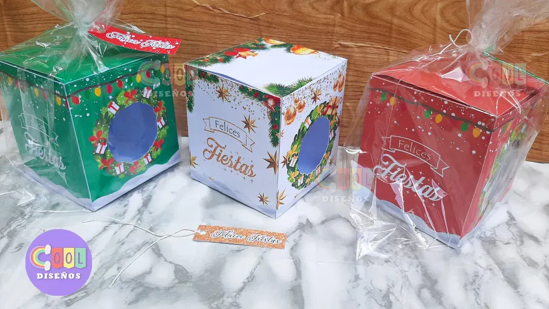 🎁🎄Cajas cubo Felices Fiestas 🎄🎁