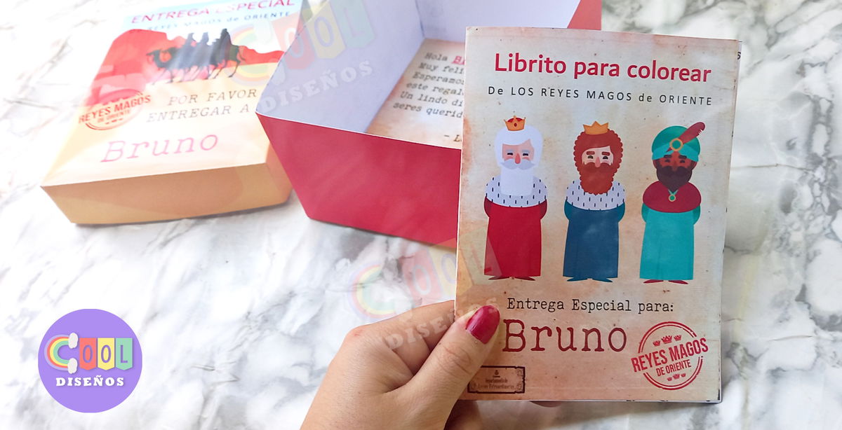 🌟🎄 Caja de Reyes Magos con tapa + Librito para colorear + Tipografias para instalar 🌟🎄